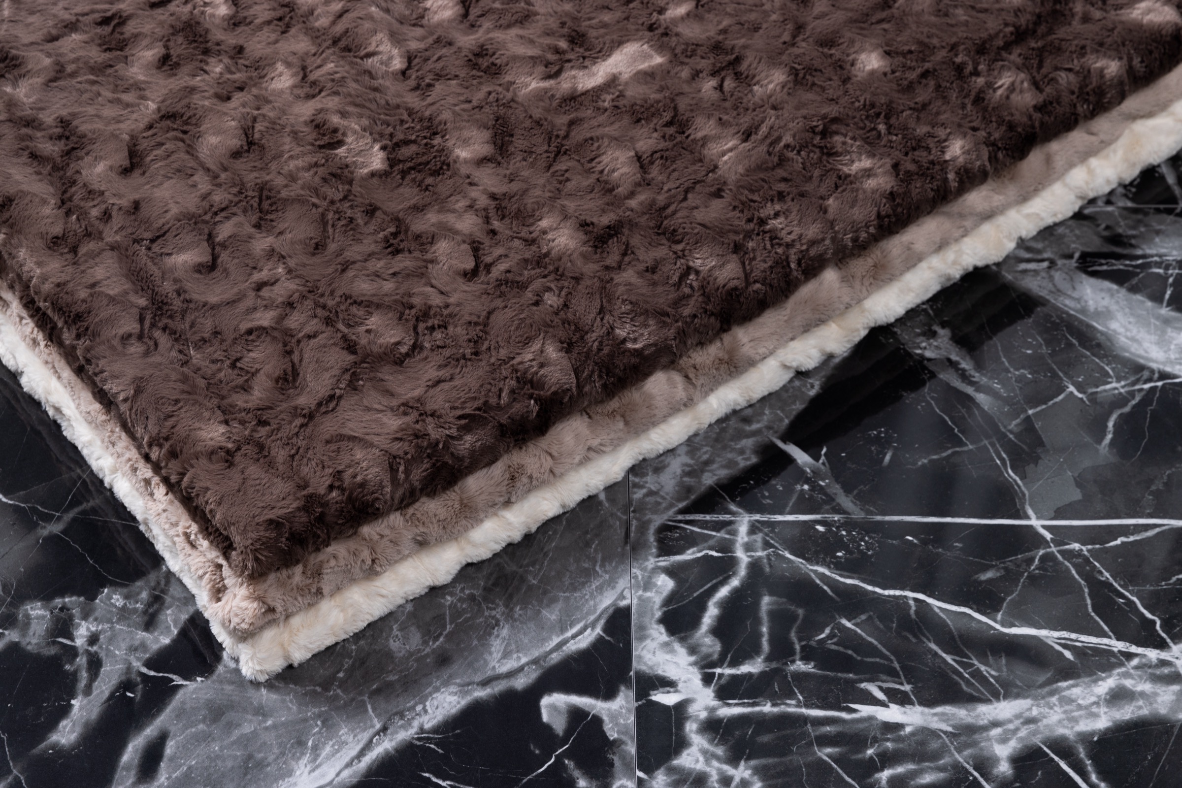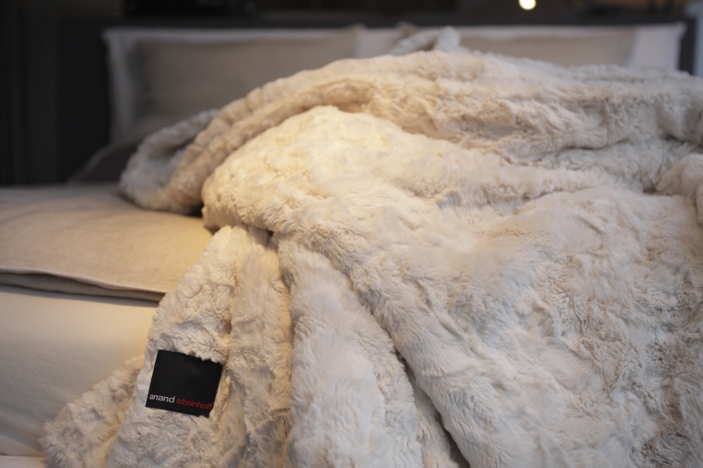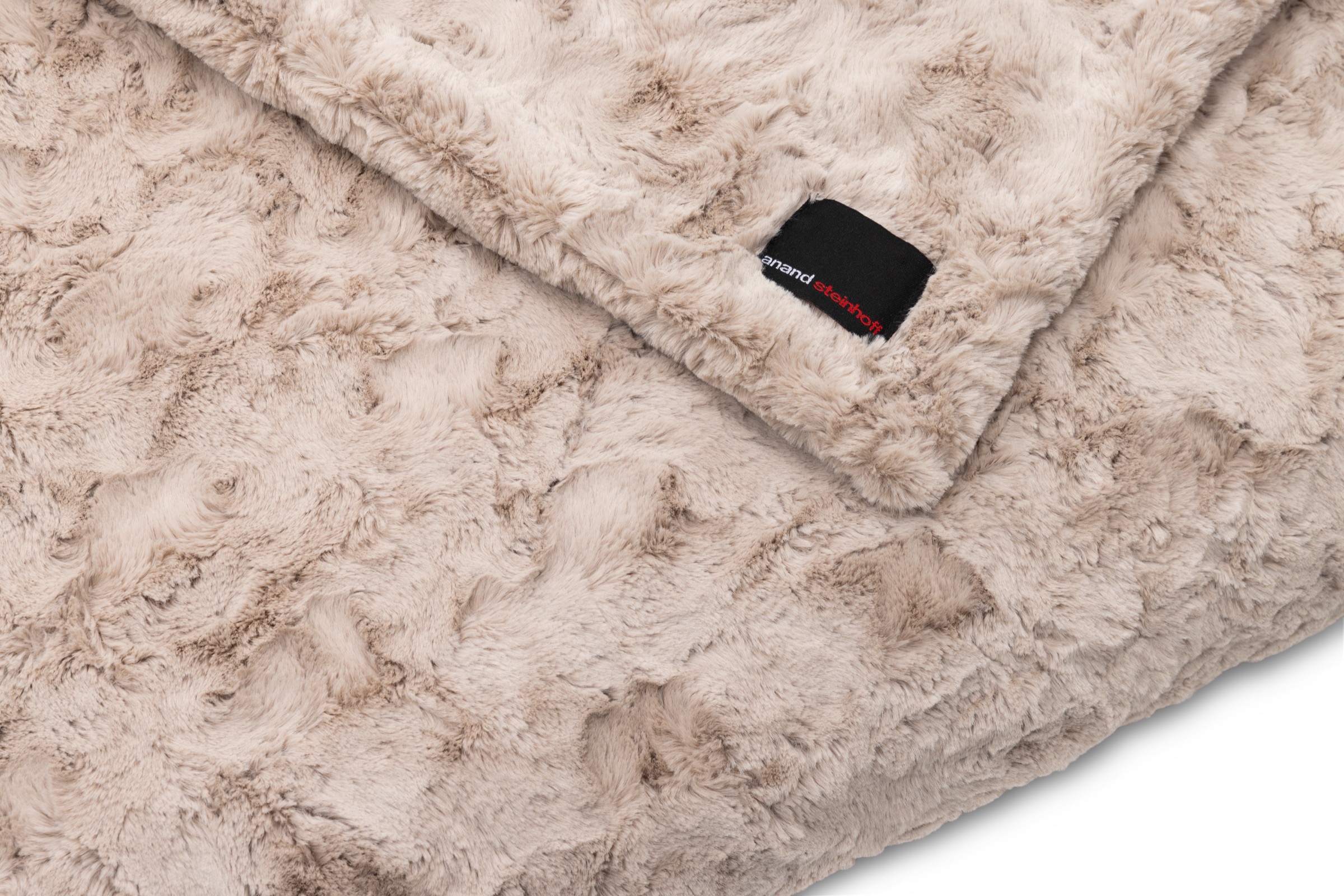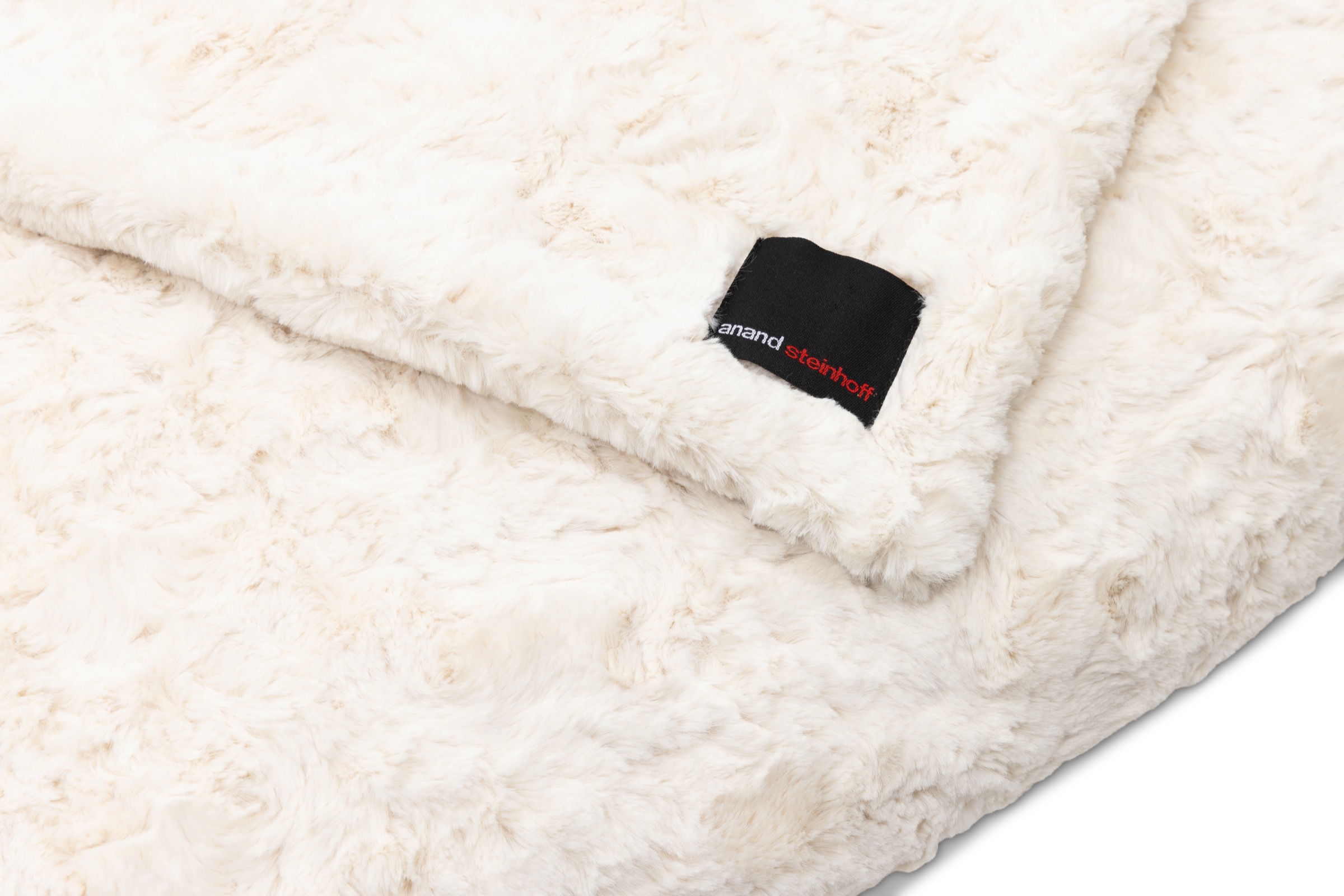 Die Decke Gabriel von Anand Steinhoff vereint Komfort und Eleganz in Perfektion. Gefertigt aus hochwertigem Teddy-Stoff, einem besonders weichen Kunstfell aus 100% Polyester, besticht sie durch ihren anschmiegsamen Griff und ihre doppelseitige Verarbeitung.