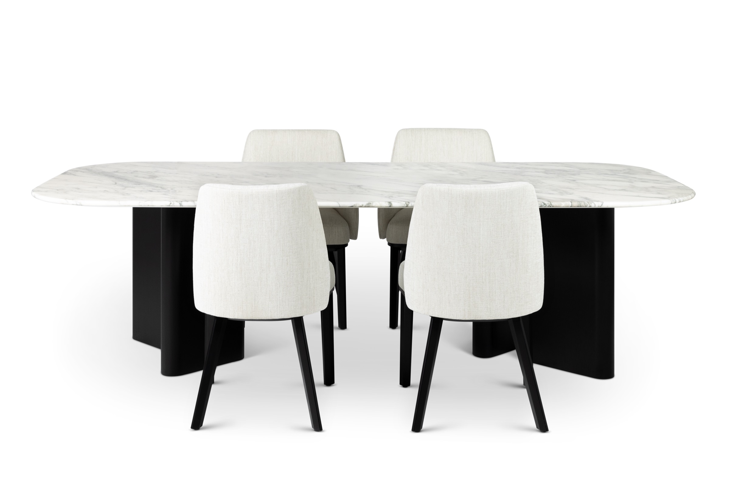 Der Alfred Esstisch besticht durch seine organische, skulpturale Ästhetik, die trotz seiner beeindruckenden Größe eine unerwartete Leichtigkeit ausstrahlt. Besonders prägend sind die sanft abgerundeten Tischbeine, die mit ihrem harmonischen Spiel der Volumina einen spannenden Kontrast zur feinen Tischplatte erzeugen.